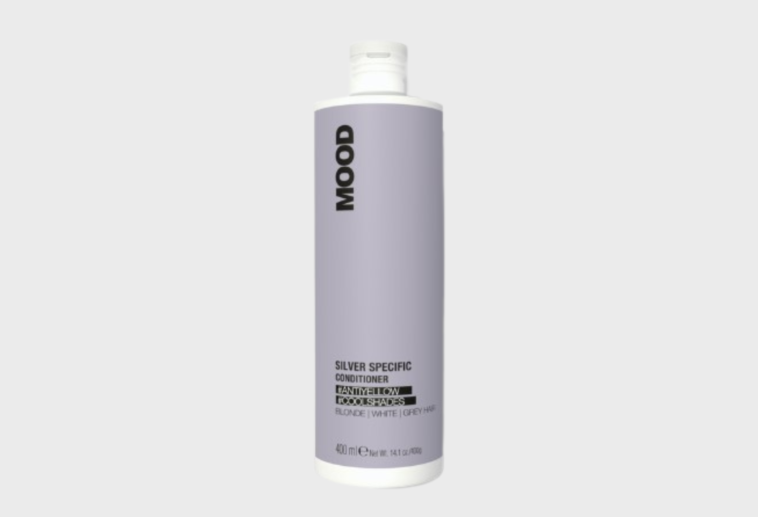 MOOD Silver Specific Conditioner completes silver hair care. Enhances cool tones, prevents yellow discolouration, deeply moisturises. Violet pigments continue toning, Blueberry extract conditions. Apply after Silver Shampoo, leave 2-3 mins. 400ml. Paraben-free, cruelty-free. Best with Silver Shampoo system.